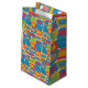 Diese Geschenktasche hat ein modernes Design von hellen Farben, die abgerundete Rechtecke mit anderen Rechtecken innerhalb von einer Sammlung von Linien gebildet werden.