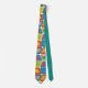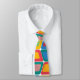 Diese Krawatte hat ein modernes Design von hellen Farben, die abgerundete Rechtecke mit anderen Rechtecken innerhalb von einer Sammlung von Linien gebildet werden.