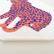 Heller Leopard von Emma Scarvey. Ein Leopard in einem hellen, lebendigen orangefarbenen Schatten mit kontrastierenden blauen Flecken. | 161274Z