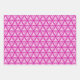 Ein Set von drei dekorativen 19x29"-Packpapieren: ein gemustertes Blatt mit einem Dreieck aus komplexen, hellen magentafarbenen Wirbel auf einem hellen Hintergrund, solide Magenta und hellrosa lila Blätter für eine anspruchsvolle Geschenksammlung, und Graukunstprojekte