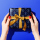 Bright Navy und Gold Starlight Design Geschenkpapier