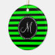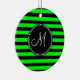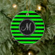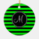 Bright Neon Lime Green und Black Stripes Keramik Ornament