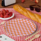 Bright Orange Checked Pappteller