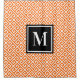 A white and orange Greek key maze pattern with a black and white single letter monogram.