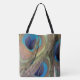 Die Bright Peacock Feathers Tote Tasche ist ein echter Blickfang. Es gibt mehrere Herzen mit einem Peacock Face Foto, einzigartiges Design! Element der Pfauenlinie.
