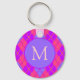 Bright Pink and Blue Argyle Pattern Monogram Schlüsselanhänger