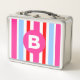 Bright Pink and Blue Candy Stripes Monogram Metall Brotdose