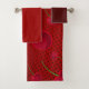 Helles rotes Kirschmuster mit herzförmigen Highlights auf jeder Kirsche. Der Hintergrund besteht aus einem roten Farbverlauf mit dunkelrotem Punktmuster. Diese hellroten Kirschen sind reif für die Ernte!