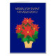 Eine helle, festliche Weihnachtskarte mit dem Gruß in Polnisch (Wesolych+Swiat) und ein goldener Pot von Bright Red Poinsettias auf einem Deep Blue Hintergrund mit goldenen Effektschriften. Das Design stammt aus einer handbemalten PapierCollage von Judy Adamson und Sie können Ihre eigene Insider-Nachricht hinzufügen, wenn Sie möchten.