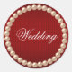 WEDDING auf leuchtend rotem, bienartig geometrischem Muster Hintergrund, umgeben von weißen Perlen. Um dieses Design anzupassen, ändern Sie bitte den Text: Save the Date, Brautparty" Aus der Bibliothek von, Vielen Dank, Liebe, etc, oder Ihr Monogramm-Brief.