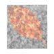 Ein selektiv gefärbtes Herbstfoto aus gefallenen crepe Myrte-Blätter mit einer goldgerahmten Blattform aus hellrot, orange und gelb vor schwarz-weißem Hintergrund.