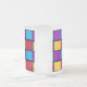 Bold and bright checked pattern with red, blue and yellow squares, many items personalized with block text.