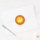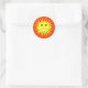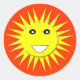 Dieses Set von runden Aufklebern zeichnet sich durch die leuchtend gelbe Sonne aus, die Sie garantiert auch an den schlimmsten Tagen lächeln lässt. Es ist auf einem roten, heißen Hintergrund und hat einen großen weißen Smiley Mund und riesige schwarze Augen mit weißen Schülern.
