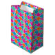 Eine schicke mittelgroße Geschenktasche mit einem traditionellen islamischen Muster in hellrosa, orange, türkisblau und hellgrün, in Weiß umrissen; aus der posh & painterly 'Islamic' Kollektion kann dieses Muster leicht an jeden Geschenkbeutel angepasst werden.