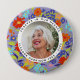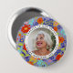 Celebrate a loved family member or friend with this round photograph button featuring a whimsical and bright painterly wild flower pattern on pastel lavender purple with easily edited text to memorialize a very special person or moment in life.