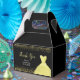 A beautiful bright yellow themed elegant watercolor dress gown on a black background with faux glitter at the top and bottom of the favor box.