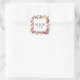Entworfen, um unsere Brilliant Bloom Hochzeitskollektion, quadratische Aufkleber Ihre Initialen oder Monogramm und Hochzeitsdatum gerahmt in einer Abbildung von rosa Blume und üppigen Blätter.