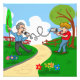 Cartoon von zwei Männern, die auf einer Dose sprechen, kann telefonieren.