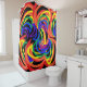 Dieser wunderschöne Duschvorhang weist ein abstraktes dreidimensionales Muster von Regenbogenmonden in Rot, Orange, Gelb, Grün, Blau und lila auf schwarzem Hintergrund auf.