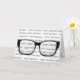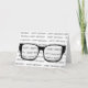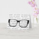 Große schwarze Brille mit verschwommenem und im Fokus fröhlicher Geburtstagstext auf Weiß.