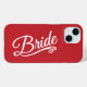 Dieses niedliche iPhone-Gehäuse wird mit Bride akzentriert, extravagant in Weiß auf rotem Hintergrund geschrieben und ist somit das ideale Geschenk für die neue Braut während der Ferien.