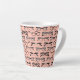 Diese Tasse ist mit einer Vielzahl von Brillen und Brillenrahmen in Schwarz und Weiß auf einem blassrosa versehen.
