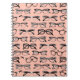 Dieses Notebook verfügt über eine Vielzahl verschiedener Brillen und Brillenrahmen in Schwarz und Weiß auf einem blassrosa.
