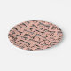 Diese Teller sind mit einer Vielzahl verschiedener Brillen und Brillenrahmen in Schwarz und Weiß auf einem blassrosa versehen.