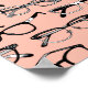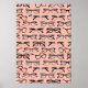 Dieses Poster bietet eine Vielzahl verschiedener Brillen und Brillenrahmen in Schwarz und Weiß auf einem blassrosa.