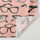 Diese Tapisserie bietet eine Vielzahl verschiedener Brillen und Brillenrahmen in Schwarz und Weiß auf einem blassrosa.