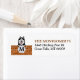 Die links Seite dieser Rücksendeadressen-Aufkleber zeigt ein Aquarellbild eines sibirischen Husky-Hundes, der über eine rote und braune Ziegelwand guckt. Der Husky hat ein Zeichen mit dem Monogramm darauf. Ihr eigener Text ist rechts braun und dunkelgrau.