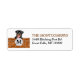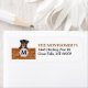 Die links Seite dieser Rücksendeadressen-Aufkleber zeigt ein Aquarellbild eines Rottweiler-Hundes, der über eine rote und braune Ziegelwand guckt. Die Rottie enthält ein Zeichen mit dem Monogramm darauf. Ihr eigener Text ist rechts braun und dunkelgrau.
