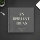Modernes Individuelle Name Notebook mit minimalistischem, stilvollem coolen Typografie-Design, das FN BRILLIANT IDEAS in Holzkohlegrau und Elfenbein liest.