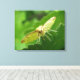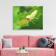 Dieser phantastische Leinenprint zeigt ein detailliertes Makrofoto einer kleinen, gelbfarbenen Motte mit braunen Markierungen auf einem Pollyhockblatt. Auf dem Foto sehen Sie die Unterseite der Mottenflügel, das Fell auf dem Rücken, seine blassenden Augen und seine braunen und weißen Beine. Sie können auch sehen, dass es seine fütternd Röhre entfressen hat, um zu testen, ob das Hollyhockblatt Futter ist oder nicht.