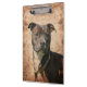 Brindle mit weißem pitbull auf einem Vintagen Hintergrundhundeliebhaberklemmbrett