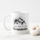 Schwarzweiß-Kaffee-Tasse mit dem Zitat "Bring mich in die Berge." Ideal für diejenigen, die das rustikale friedliche Bergleben mögen.