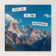 Hübsche Aussicht auf eine Bergkette mit prächtigem blauen Himmel und inspirierendem Zitat.