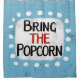 "Bringen Sie den Popcorn" ist ein niedliches Textdesign in hellblau mit schwarzem und rotem Text, mit einer weißen Akzent-Form und weißen texturierten weißen, weißlichen, weißlichen, weißlichen Punkten, die ihn umgeben.