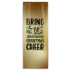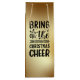 Genießen Sie Ihr Urlaubsgeschenk mit der "Bring On The Christmas Cheer" Weinbeutel. Diese elegante Weintasche, die für festliche Ambiente entworfen wurde, verbindet saisonalen Charme mit praktischer Praxisnähe. Ideal, um Weinflaschen zu schenken, fügt es jeder Ansammlung eine Touch von Eleganz hinzu. Aus langlebigen Materialien, wiederverwendbar und ideal für Wirte, Gastgeschenke oder stilvolle Weinpräsentationen. Feiern Sie Weihnachten im Stil und versichern Sie sich Ihr Geschenk mit diesem schicken und festlichen Accessoire!