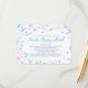 Diese moderne Babydusche ist individuell gestaltet und bietet eine 3,5" x 5" Fragekarte. Entworfen mit schönen blauen Konfetti auf einem weißen Hintergrund. Baby Shower Insert Card Design perfekt für einen kleinen Jungen. Schnelle und einfache Anpassung, ändern Sie alle Vorlageninformationen mit Ihren eigenen. Eine Matching Baby Dusche Einladung ist ebenfalls verfügbar.