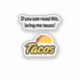 Bringen Sie mir Takos, wenn Sie das bei Aufklebern Aufkleber