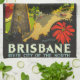 Gemäldetes Design mit einer Landschaft der Brisbane Stadt, einschließlich der Alten Windmühle, mit Poinsettia, Brisbanes Blumenemblem, c 1934 Künstler Percival Albert Trompf. Digital optimiert, um die Farben wieder nahezu originell zu machen.