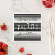 Ideal für jeden Musikliebhaber. Diese Servietten zeichnen sich durch ein abstraktes Design von weiß auf schwarz aus. In der Mitte werden Musiknoten angezeigt. Die Hintergrundfarbe kann geändert werden, indem Sie auf IT, BEARBEITEN, dann HINTERGRUND klicken. Text anpassen.