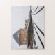 Eine schneebedeckte Szene des Winters an der Bristol-Bahnstation in Bristol, Virginia