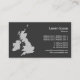 Eine Visitenkarte mit einer Karte der Britischen Inseln. Firmendetails auf der Vorderseite mit Namen und Kontaktdaten auf der Rückseite in einem tonalen Stil, der die Vorderseite kontrastiert.