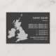 Eine Visitenkarte mit einer Karte der Britischen Inseln. Firmendetails auf der Vorderseite mit Namen und Kontaktdaten auf der Rückseite in einem tonalen Stil, der die Vorderseite kontrastiert.