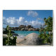 Foto von The Baths Beach auf der Jungfrau Gorda in den Britischen Jungfrauen. Inselparadies mit Riesenfeldern, Sandstrand, ruhiges Meer, blauer Himmel und puffigen weißen Wolken.