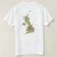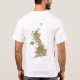 Die Front dieses T - Shirt trägt eine kleine britische Flagge mit seinen vertrauten weißen ausgesaugten regelmäßigen und diagonalen roten Kreuzen auf einem blauen Hintergrund, während die Rückseite eine Entlastungskarte von Großbritannien anzeigt. Verfügbar auf T - Shirts, Sweatshirts, Polo, Langhülsen und mehr.