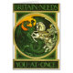 Vintages britisches einziehenplakat für den Ersten Weltkrieg. Das roundel Bild ist von St George, das den Drachen tötet. Von einer ursprünglichen (1915) Lithographie des 20. Jahrhunderts durch parlamentarischen einziehenausschuß. Alle Rechte vorbehalten © padre Kunst 2013