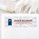 Ein Set von personalisierten Adressetiketten, die in einem Briefkasten im Stil der Polizei erstellt wurden, der an Großbritannien erinnert. Hinter Ihren Informationen und das Anruffeld ist eine britische Flagge.
